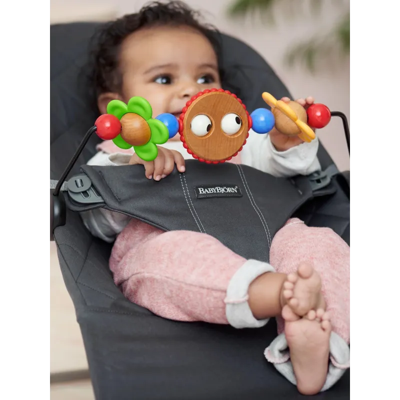 Urocza i zabawna zabawka, którą Twoje dziecko od razu pokocha! Kolorowa, pełna ciekawych kształtów i możliwości obracania - idealna do oglądania, dotykania i wspólnej zabawy! Zabawka do leżaczka BABYBJORN pomaga również dziecku odkrywać jego możliwości fizyczne i rozwijać zdolności motoryczne.