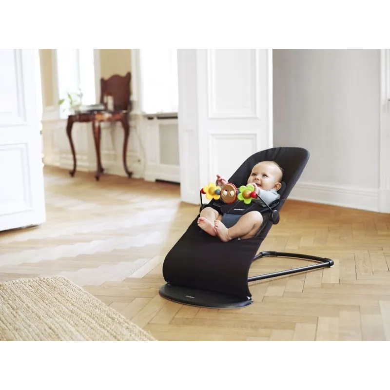 Zabawka do leżaczka jest przetestowana i bezpieczna - Zabawka jest całkowicie bezpieczna dla dziecka do smaku lub ssania. Wszystkie produkty z tworzyw sztucznych firmy BABYBJORN spełniają odpowiednie wymogi bezpieczeństwa tworzyw sztucznych w Europie i USA. Oznacza to, że plastik, którego używa firma przechodzi ciągłe, rygorystyczne testy na obecność bisfenolu A (BPA) i innych szkodliwych substancji i jest certyfikowany jako bezpieczny dla żywności.